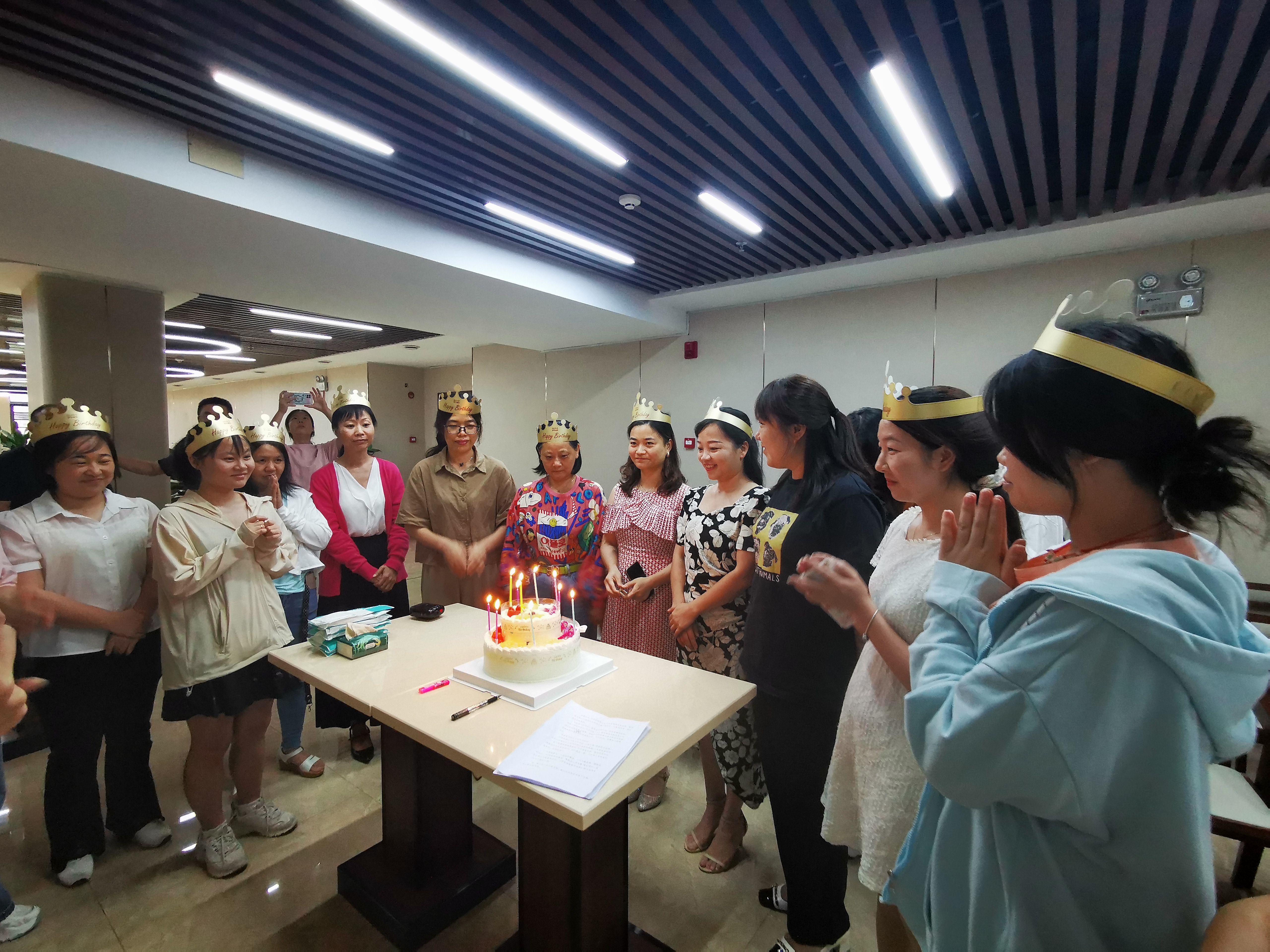 熟悉的生日歌響起時,壽星們點(diǎn)燃生日蠟燭,許下心愿,在歡聲笑語中品嘗美味的蛋糕,大家露出一張張幸福的笑臉……