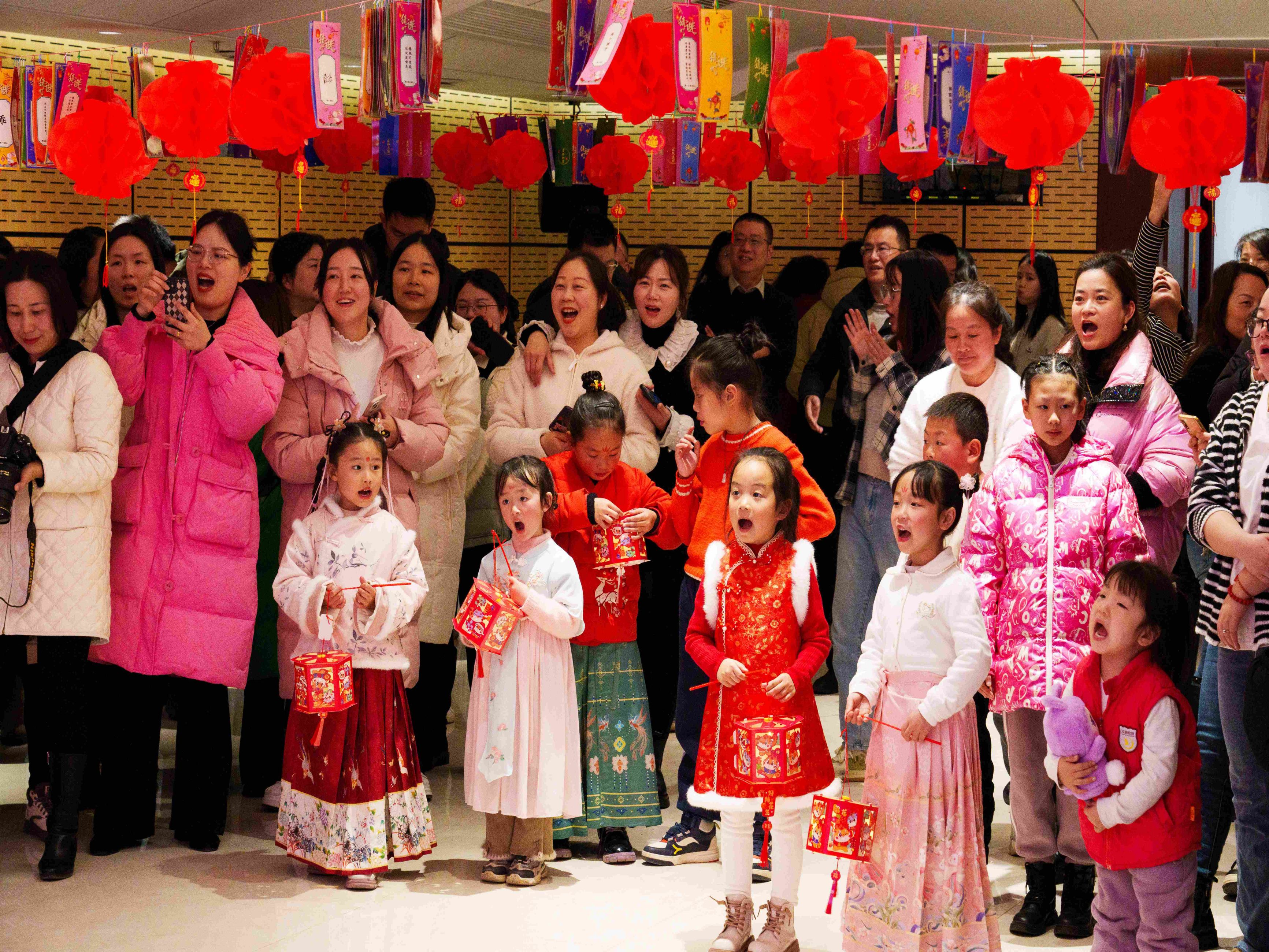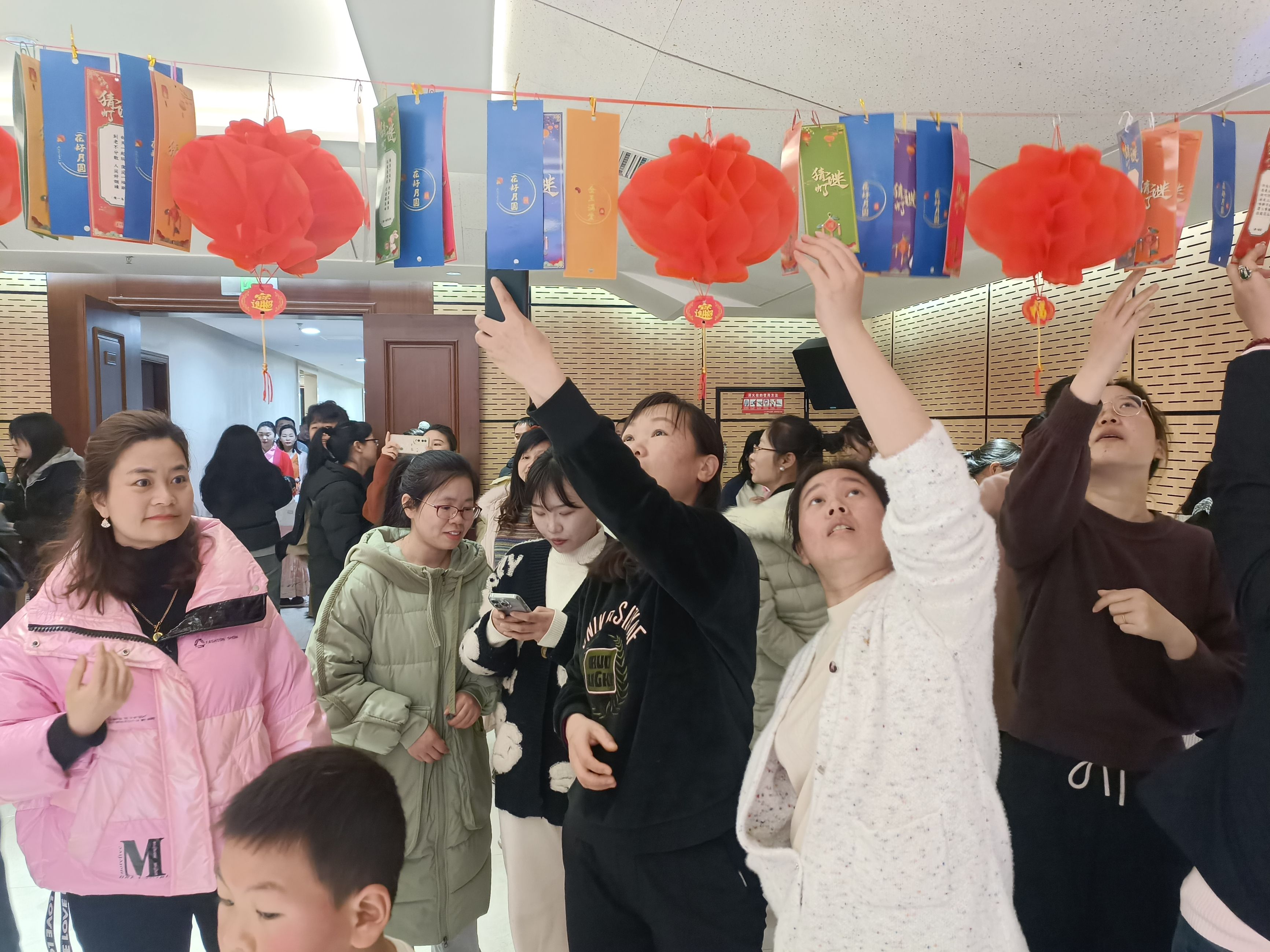 鬧元宵,猜燈謎。燈謎箋五彩繽紛、高高懸掛,謎面內(nèi)容形式多樣,大家三五成群,一雙雙欣喜而激動(dòng)的眼睛閃爍著智慧的光芒,積極思考著,熱烈探討著,共同體驗(yàn)燈謎帶來(lái)的樂(lè)趣,感受著濃濃的文化氣息。